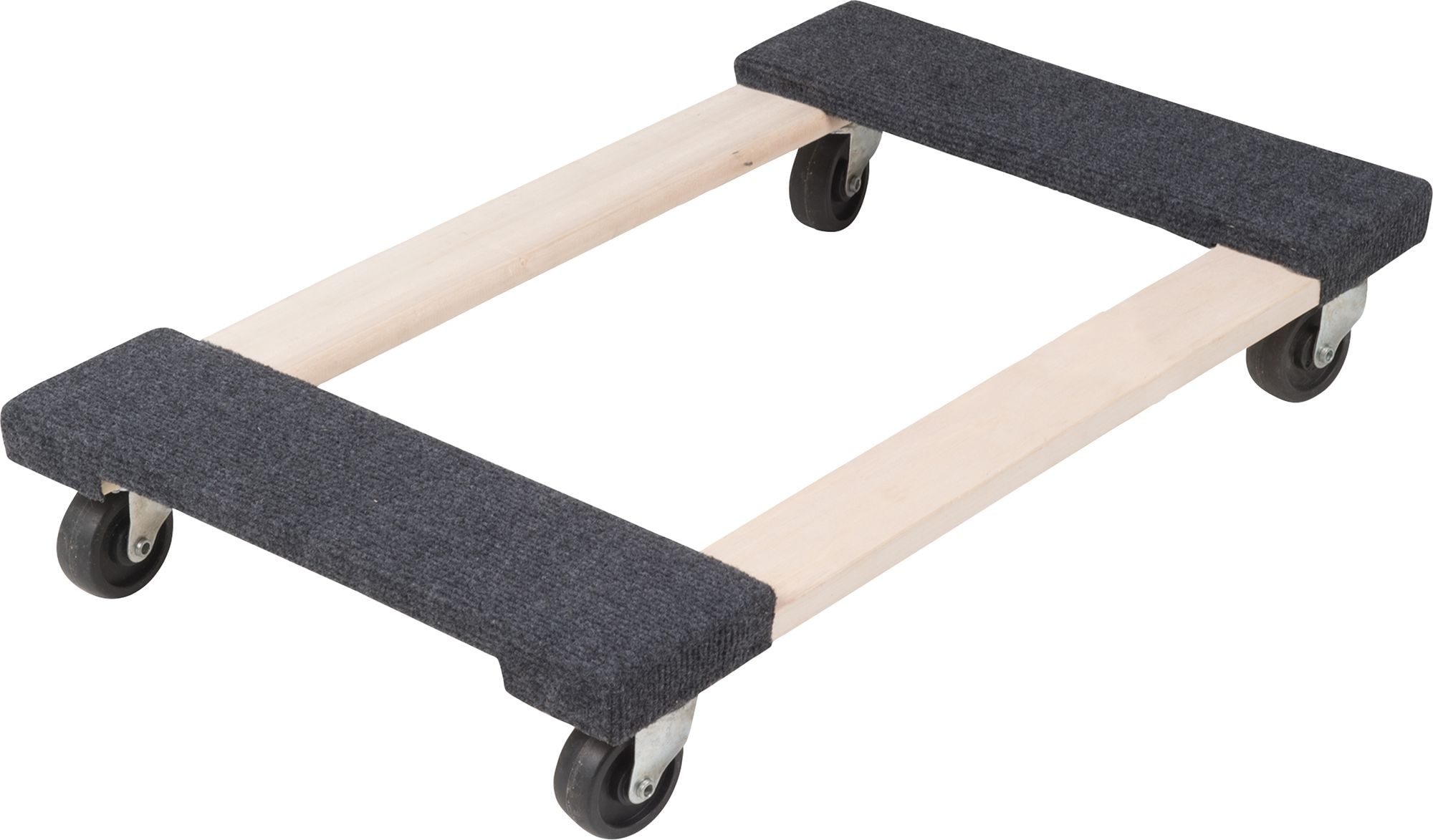 Large 3 in. swivel casters help with easy mobility and ensure smooth movement over uneven terrain. Durable wood construction. Carpeted ends protect cargo and surroundings from damage.